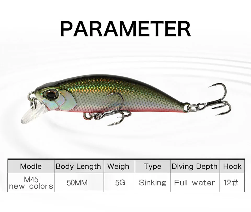 1PCS 50S NEW COLOR 4.3g 5g Sinking Minnow Fishing Lure INTRUDER TROUT Artificial Jerkbait Hard Bait Pike Wobbler Crankbait