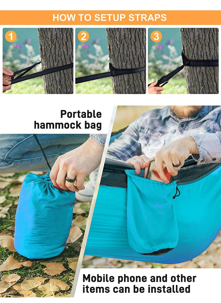 ��Soft material & Support 500 pounds – Our hammocks are made of new high quality 210T parachute nylon fabric, it is very comfortable and durable. The camping hammocks provide relaxing support up to 500 lbs.