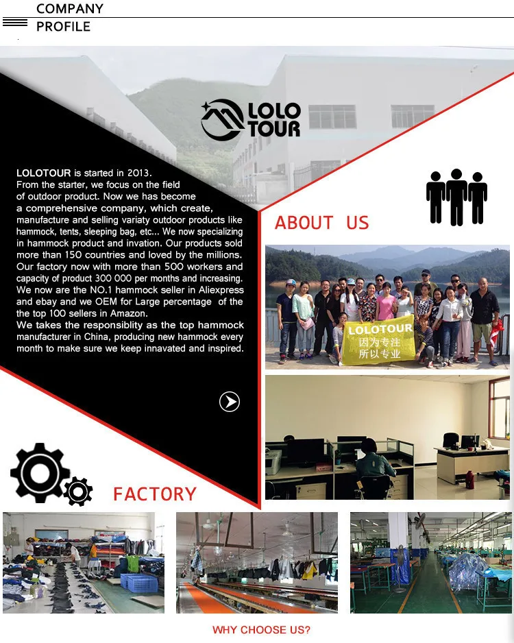 ��About LOLOTOUR- This is Premium Quality camping hammock, it is super lightweight, perfect for backpacker. We focus on camping gears, especially quality camping hammocks. We also have a camping hammock with two tree straps (each 5+1 loops) and a new design camping hammock with mosquito net, they can meet the needs of different travelers. Pls click on the "Product " above for more products details.