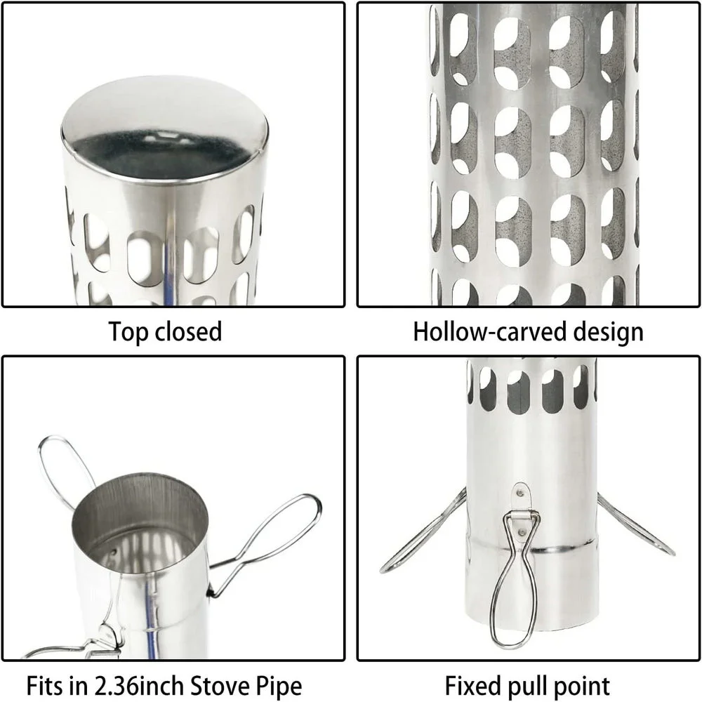 【Spark Arrest & Rain Cover】- The top of this spark arrestor pipe is closed and surrounded by a mesh cavity, which prevents sparks from flying out. The closed top also ensures that rainwater will not flow from the stove pipe into the fireplace during rain or snow. Please note that the spark arrestor only stops a portion of the sparks, NOT 100% of the sparks.